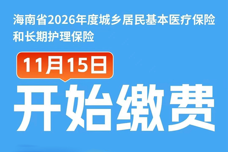 海南省2026年度城鄉居民基本醫療保險和長期護理保險11月15日開始繳費